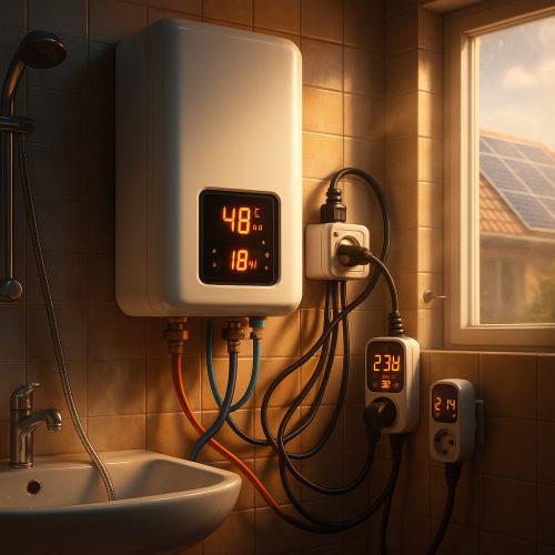 Lastverschiebung: Mit intelligenten Warmwasserspeichern oder zeitgesteuerten Systemen lässt sich der Durchlauferhitzer-Betrieb in sonnenreiche Stunden verlagern. Ein 300-Liter-Speicher kann morgens mit PV-Strom aufgeheizt werden und den ganzen Tag warmes Wasser liefern.